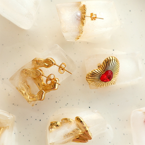 • Boucles d'oreilles / créoles en acier Inox coeur Doré