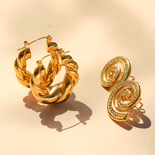 • Boucles d'oreilles / puces en acier Inox spirale avec strass Doré-transparent