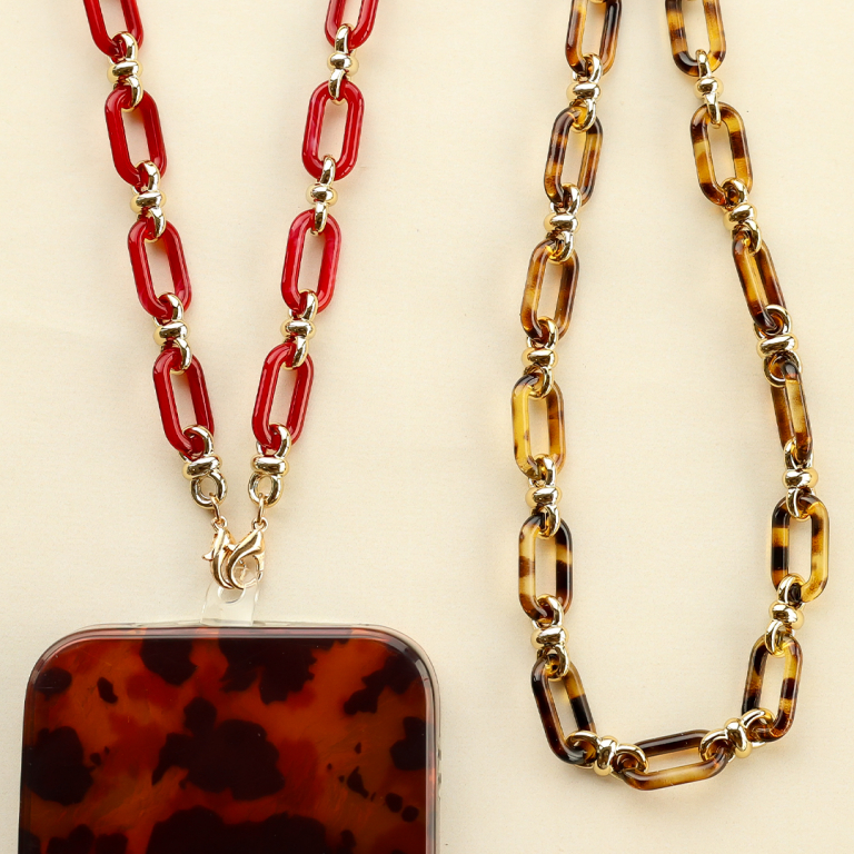 • Cordon téléphonique tendance en acrylique Bordeaux-doré