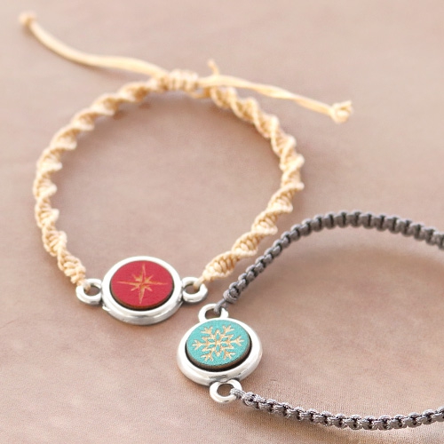 Nos nouveaux cabochons en bois sont 100% tendance cet automne/hiver ! Nous avons combiné ces cabochons avec les bracelets Cuoio colorés de notre collection. Nous avons également fabriqué des bracelets en fil macramé avec un connecteur avec serti pour cabochon. Ces bracelets se laissent parfaitement combiner ! Quelle est votre composition de couleur préférée ?