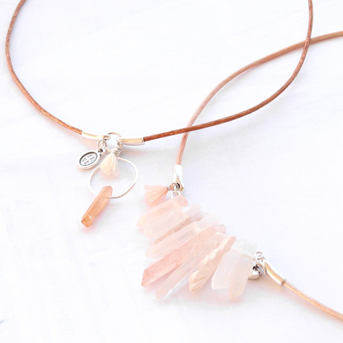 Boucles d'oreilles et colliers avec des pierres naturelles en forme de goutte et du quartz