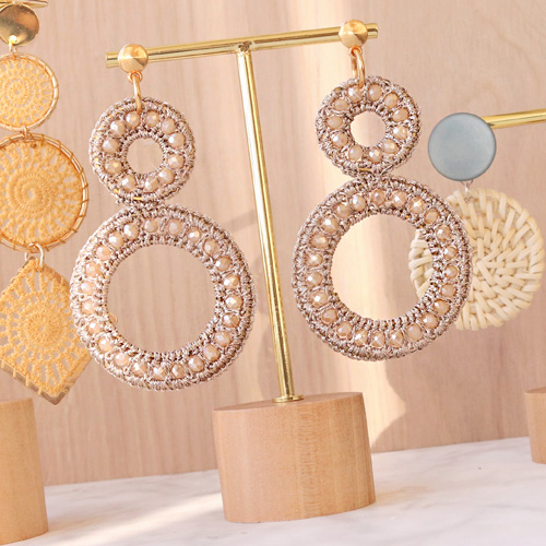Boucles d’oreilles en style soutache avec pendentifs au crochet et métal DQ