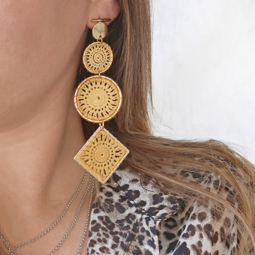 Ces boucles d’oreilles en style soutache sont un vrai must have ce printemps/été 2019. Avec les nouveaux pendentifs au crochet et les pendentifs en rotin vous pouvez les faire vous-même. Raccordez ces pendentifs aux puces d’oreilles ou aux crochets d’oreilles et le tour est joué ! Les pendentifs au crochet se laissent également bien combiner avec nos pendentifs en résine. Collez un petit pendentif en résine sur un de nos clous d’oreilles, raccordez-y un pendentif au crochet et vous aurez combiné deux styles en un bijou !