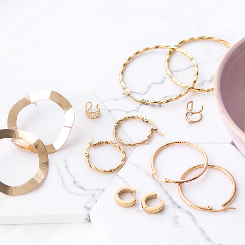 Laissez-vous séduire par cette magnifique collection de boucles d’oreilles. Nous proposons des boucles d’oreilles en métal et en acier inox dans les couleurs dorées et argentées. Vous y trouverez des créoles avec toutes sortes de motifs, mais aussi des boucles d’oreilles statement et des ear cuffs (bagues d’oreilles). Il y en a pour tous les goûts !