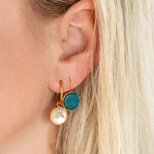 • Boucles d'oreilles Polaris Steel (Inox) avec serti pour cabochon 12mm (avec anneau vertical)  Doré