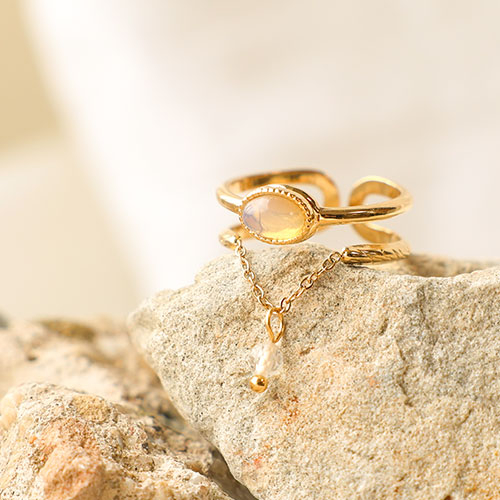 Bagues en acier Inox avec pierre naturelle Doré-rose clair