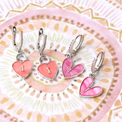 Pendentifs en résine fermoir coeur Argenté-rouge corail
