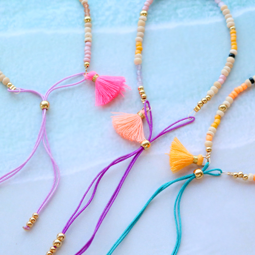 Vous aussi, vous souhaitez confectionner des bracelets multicolores ? Alors lancez-vous sans plus attendre avec nos pompons colorés ! Avec ces articles fun, vous pouvez donner à n’importe quel bijou un aspect super cool. Créez des bracelets de poignet ou de cheville estivaux en concevant différents modèles. Utilisez des perles en coco, des perles de rocaille, des perles acryliques et des perles facettées œil de chat. Enfilez les perles et un pompon sur du fil métallique et pliez un œillet à chaque extrémité. Passez une belle couleur de fil macramé dans l’œillet du fil. Placez un fermoir macramé en métal DQ sur le fil. Enfilez plusieurs perles aux deux extrémités du fil macramé pour apporter la touche finale. Lancez-vous et confectionnez des bijoux d’été tendance !