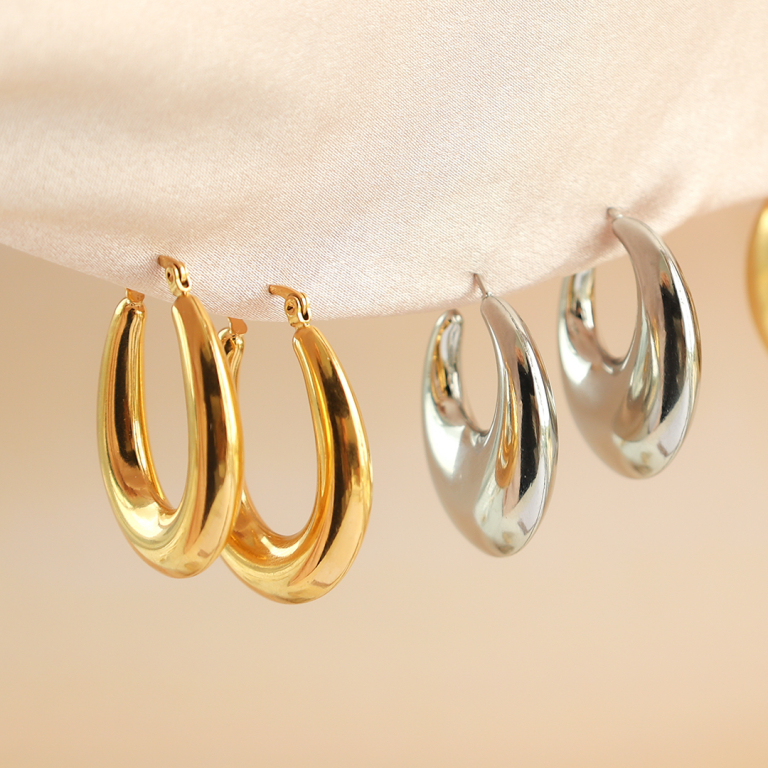 Vous êtes à la recherche de boucles d'oreilles tendance et prêtes à l'emploi à ajouter à votre collection ? Ces boucles d'oreilles en acier inoxydable sont faites pour vous ! Vous pouvez porter les boucles d'oreilles en or et en argent seules ou les combiner avec d'autres bijoux de votre collection.