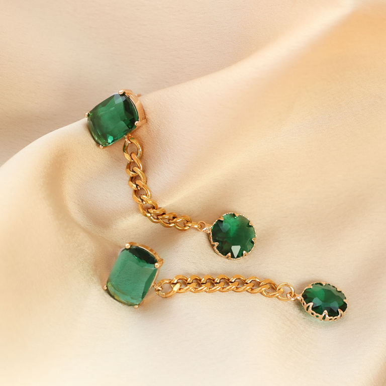 Boucles d’oreilles / puces d’oreilles en verre Crystal Glass avec anneau rectangle Vert-doré