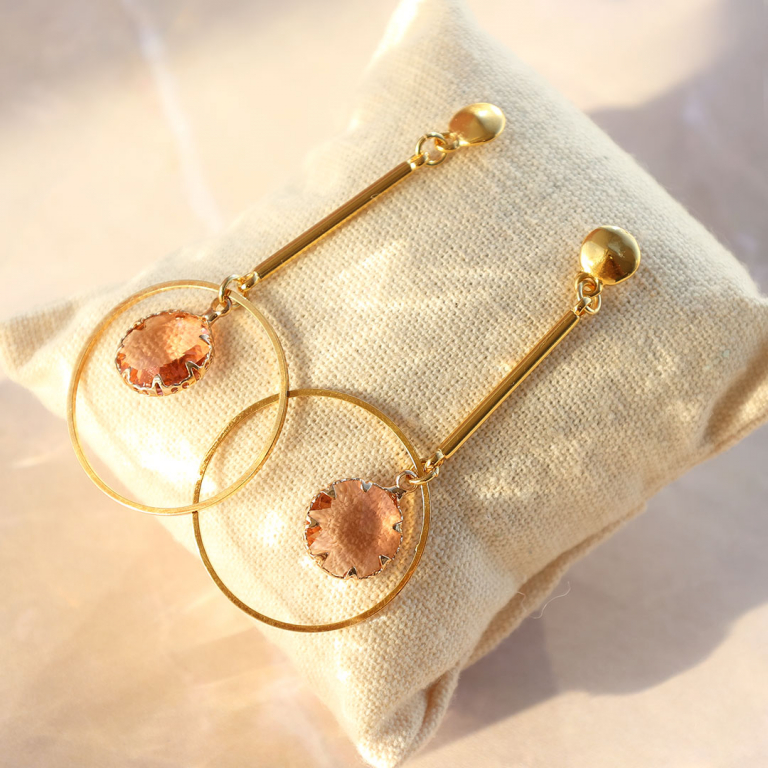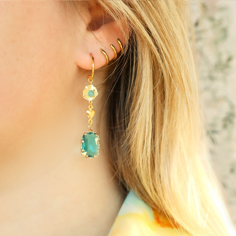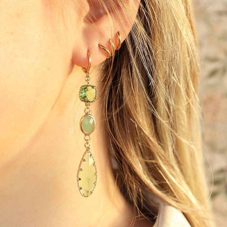 Pour créer de longues boucles d’oreilles, combinez les pendentifs en verre Crystal Glass avec des connecteurs en verre Crystal Glass, un connecteur en métal DQ ou une chaîne maille jaseron. Utilisez de petites perles d’eau douce que vous enroulez autour d’un anneau fermé à l’aide d’un fil Artistic Wire. Tournez fermement le fil autour de l’anneau à plusieurs reprises et enfilez une perle sur le fil. Faites deux fois le tour de l’anneau avant d’enfiler une autre perle. Intégrezl’anneau dans des boucles d’oreilles tendances.