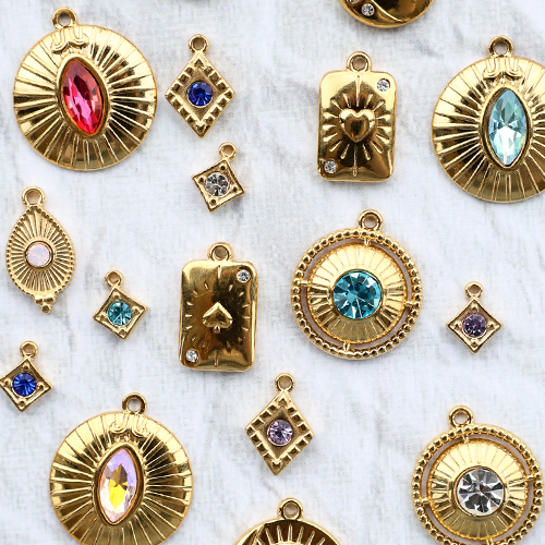 • BY31® Breloques en acier Inox carte de carreau Doré