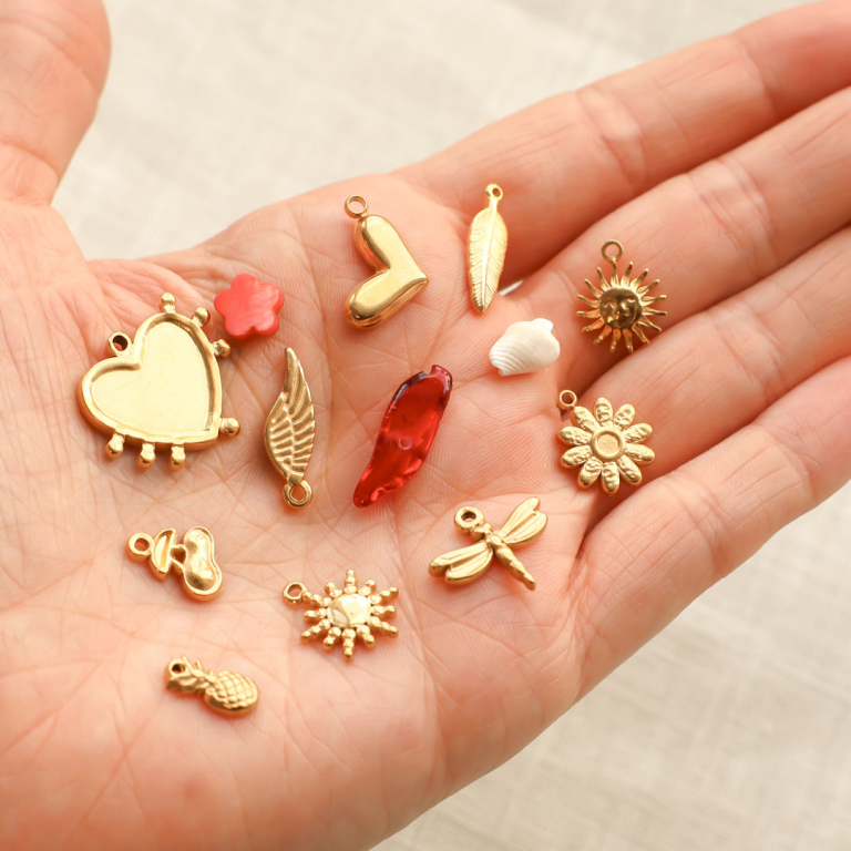 Vous les trouverez dans diverses formes telles que fleurs, animaux et cœurs. Cette série est parfaite pour créer de superbes colliers de breloques ou pour accrocher les breloques à des boucles d'oreilles créoles pour des boucles d'oreilles tendance.