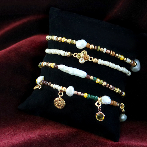 Vous pouvez faire les plus beaux bijoux avec notre nouvelle collection de perles de rocailles. Nous avons utilisé ces perles fines pour la création des bracelets et des boucles d’oreilles. Combinez les perles de rocailles en verre avec d’autres articles d’excellente qualité tels que des breloques en métal DQ ou des perles d’eau douce. Avec l’hiver qui arrive à grand pas, nous avons opté pour des coloris d’hiver.