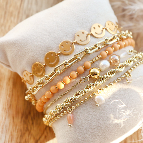Ces chaînes maille jaseron en métal DQ sont parfaites pour la création de bracelets. Coupez les chaînes à la bonne taille et fixez un fermoir et une chaîne d’extension. Créez des breloques vous-mêmes avec des perles facettées, des pendentifs en verre Crystal Glass ou des perles d’eau douce que vous accrochez à votre bracelet à l’aide d’un anneau ouvert. Ou bien réalisez un connecteur avec un clou à tête ronde et vos perles favorites. Connectez celui-ci ensuite aux boucles du sémi-bracelet en métal DQ. De cette façon vous créez simplement et rapidement un bijou magnifique !