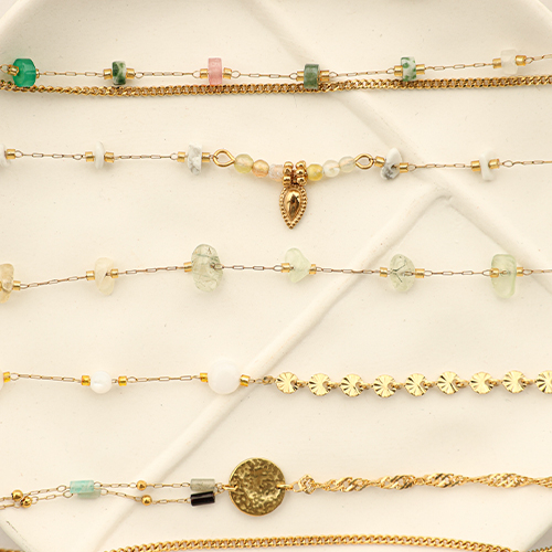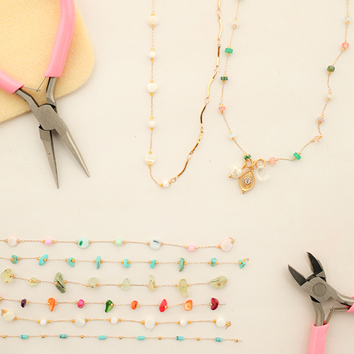 Cette nouvelle collection d’apprêts en acier inoxydable jaseron avec pierres ajoute une élégance éclatante à votre collection de bijoux ! Disponibles en magnifiques couleurs et formes, parfaits pour créer des bracelets et colliers boho-chic. Laissez-vous inspirer et donnez à votre collection une mise à jour stylée !
