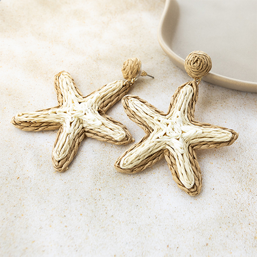 Boucles d'oreilles en raphia accroche-regard étoile de mer Beige-marron clair-doré