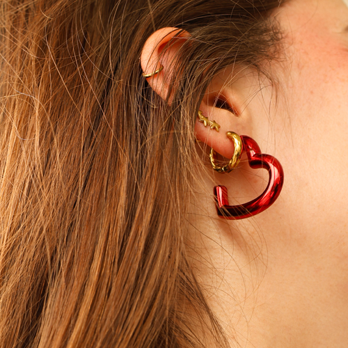 Les pendentifs en acrylique en forme de nœud et les boucles d'oreilles en forme de cœur de cette nouvelle collection sont disponibles dans diverses couleurs éclatantes telles que le rouge, le violet, l'or et le blanc. Ils ont un magnifique revêtement nacré qui ajoute une brillance élégante. Parfait pour se combiner avec différentes boucles d'oreilles tendance, mélangez et assortissez vos couleurs préférées !