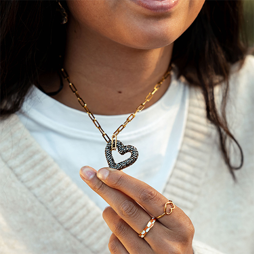 • Pendentifs en résine cœur Rose magenta-noir
