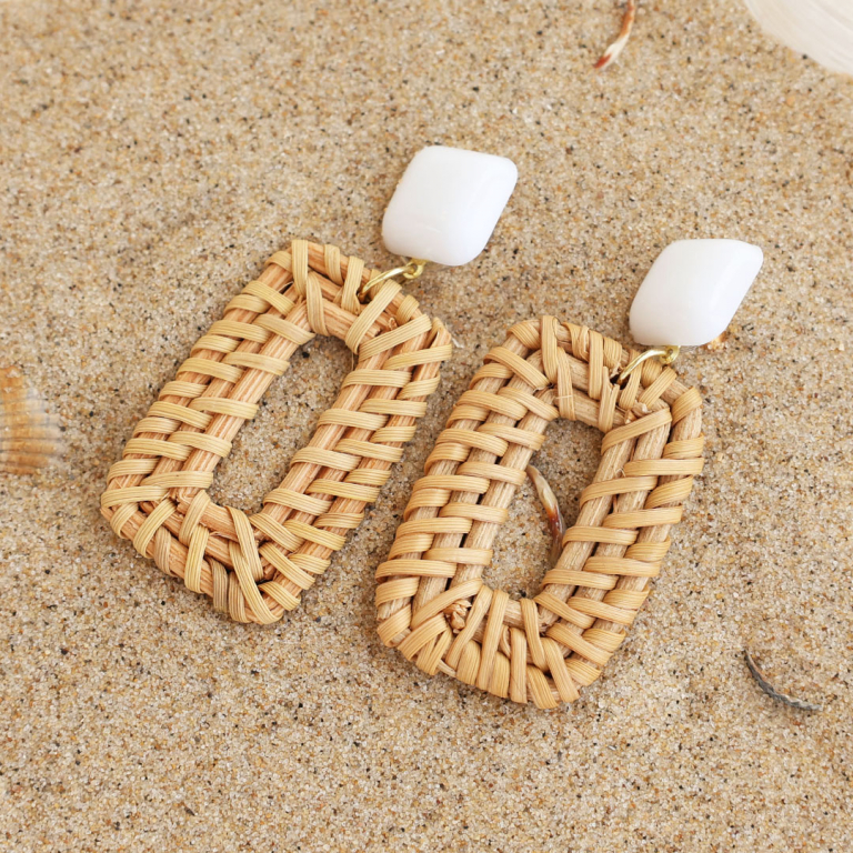 • Boucles d'oreilles tendance en rotin Blanc natural