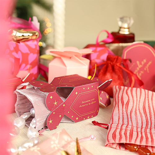 Sachet à bijoux en organza avec nœud Rose fuchsia