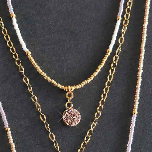 Quand vous faites des bijoux avec les nouveaux pendentifs en pierre naturelle, le succès est assuré. Ces magnifiques pendentifs peuvent faire briller n'importe quel bijou ! Nous avons créé différents bijoux en combinant les pendentifs avec de la chaîne maille jaseron, des perles à facettes et des perles en métal DQ. Les nouveaux pendentifs colorés agrémenteront chaque création bijou !