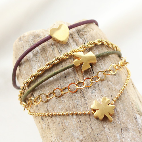 Breloques en acier inox trèfle doré