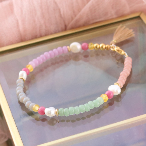Notre nouvelle collection de perles de rocailles Preciosa est idéale pour toutes vos créations de bijoux. Nous avons utilisé ces belles perles pour créer un collier avec des bracelets assortis. Comme les perles de rocailles Preciosa sont faites de verre, elles se laissent parfaitement combiner avec d’autres produits naturels tels que des perles d’eau douce et des pierres naturelles chips stone. Pour apporter une touche d’originalité, nous avons ajouté des pompons colorés et des détails dorés. Fabriquez également des bracelets assortis au collier pour créer un ensemble unique et original ! Découvrez toutes les couleurs disponibles et laissez-parler votre imagination !