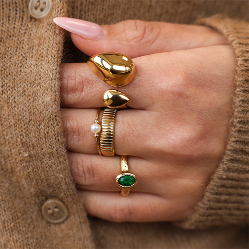 • Bagues en acier Inox gouttes Doré