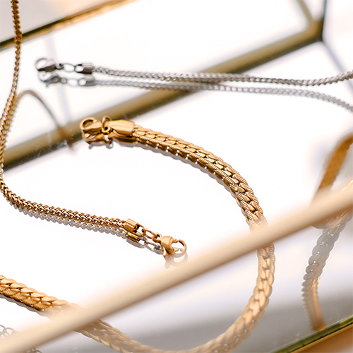 Vous cherchez des bracelets et des colliers prêts à l'emploi pour enrichir votre collection de bijoux ? Cette gamme de bijoux en acier inoxydable est faite pour vous ! Tous les bijoux sont disponibles en doré et argenté et se marieront à merveille avec vos créations.