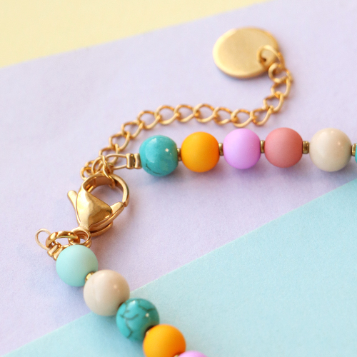 Ces perles acryliques matt donneront un très joli look à vos colliers que vous pouvez porter ensemble. Réalisez un collier avec des perles acryliques et des petites perles à écraser et alternez avec des perles en céramique dans les mêmes tons. Enfilez une perle différente en tant que accroche-regard, comme une perle d’eau douce. Portez le collier avec un collier en chaîne maille jaseron avec des breloques ou bien avec un collier en pierres naturelles.
