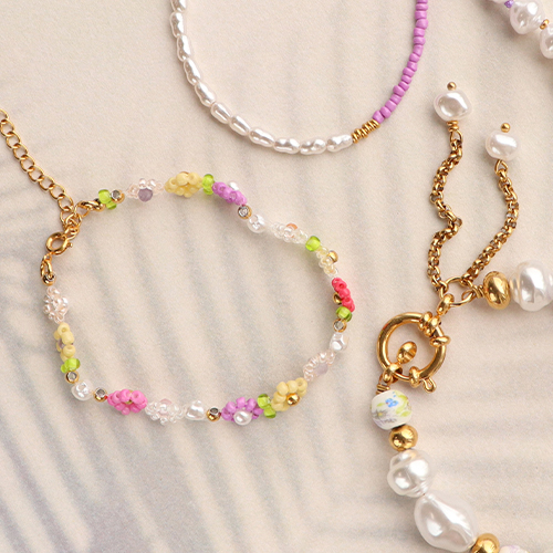 Avec cette collection d' imitations perles d’eau douce vous pouvez créer les plus jolis bracelets et bracelets de cheville. Pour faire ces bracelets, vous pouvez alterner les perles avec des perles en acier inox et des perles en céramique. Vous pouvez aussi créer des fleurs en vous servant de perles de rocailles ou de rocailles Preciosa et du fil nylon et les insérer entre les perles. Si vous voulez apprendre à faire ces fleurs, n’hésitez pas à regarder le DIY tutorial Comment faire une fleur de perles sur notre page d’inspiration