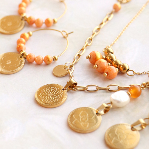 La célèbre collection Fleur de naissance ne peut vraiment pas manquer dans votre collection de bijoux ! Mais comment incorporer ces fantastiques breloques dans divers bijoux ? En utilisant différents types de jaseron en acier inox à gros et fins maillons, vous obtiendrez une belle alternance. Vous pouvez accessoiriser le jaseron en y accrochant des breloques en acier inox ou en insérant des perles en pierre naturelle. Vous pouvez bien entendu également accrocher une breloque Fleur de naissance sur l’un des colliers en guise d’accroche-regard. Vous souhaitez créer un ensemble ? Pensez alors à confectionner des boucles d’oreilles. Vous pouvez enfiler la breloque sur une créole avec des perles en acier inox et des perles en pierre naturelle. Vous pouvez également utiliser un clou à tête ronde pour confectionner un connecteur de perles d’eau douce et de perles de jade et y attacher la breloque Fleur de naissance.