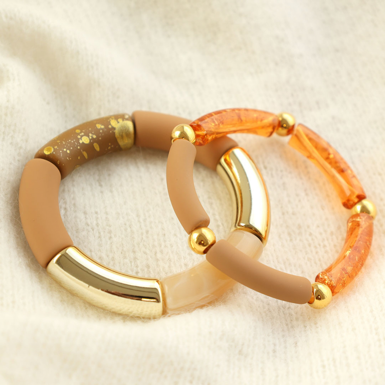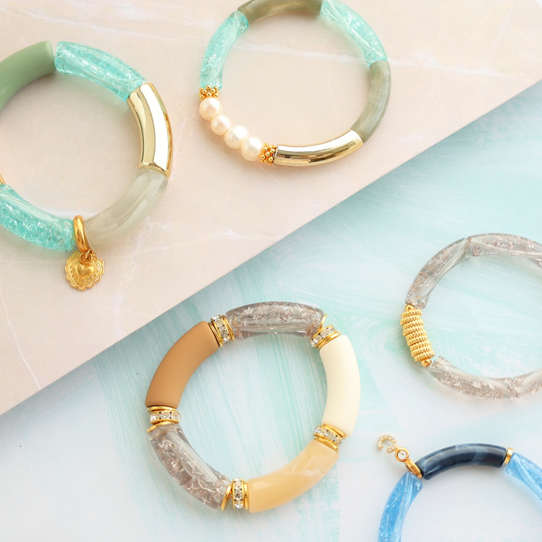 Vous pouvez combiner ces perles tubes acryliques craquelé avec les autres perles tubes acryliques de la collection. En enfilant d’autres perles entre les perles tubes, vous réalisez des bracelets de différentes tailles. Créez des bracelets élégants avec des perles strass rondelle, des perles d’eau douce et des perles en métal DQ rondelle. N’oubliez pas d’ajouter une breloque en métal TQ ou une autre breloque de la collection aux bracelets pour une touche personnelle !