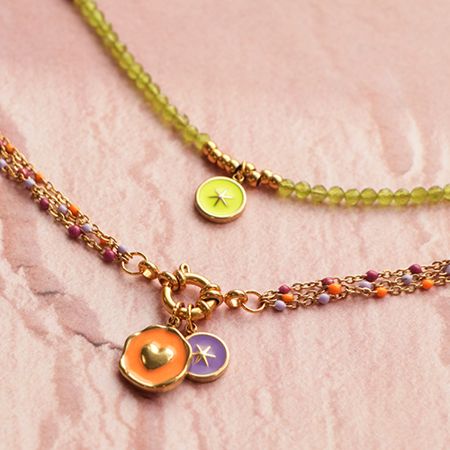 • Colliers en acier inox chaîne à billes Mix&Match Doré