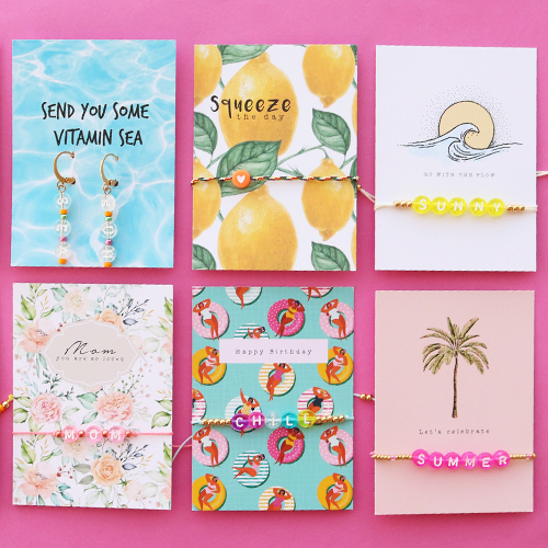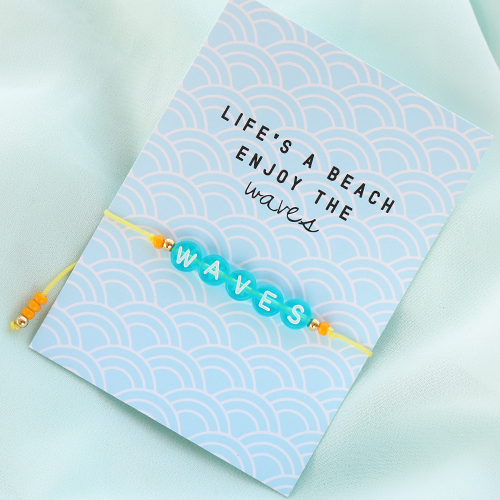 Besoin d’inspiration pour confectionner de superbes bijoux pour l’été ? Nous avons pris les devants et avons confectionné ces bracelets super cools avec du fil macramé et des perles lettres acryliques. Vous pouvez enfiler les perles lettres acryliques sur le fil macramé et créer des bracelets avec de charmantes citations ou des noms ! Bien entendu, vous pouvez aussi nouer ou tresser le fil macramé suivant de jolis motifs. Pour compléter le bracelet, vous pouvez enfiler une combinaison de perles lettres acryliques et de perles Miyuki sur un fil élastique. Vous disposerez ainsi d’un ensemble varié qui se marie parfaitement ! Outre les bracelets, vous pouvez également confectionner de superbes boucles d’oreilles avec ces articles. Présentez ces fantastiques bijoux sur les dernières petites cartes à bijoux et votre collection d’été est prête !