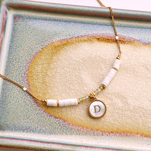 Breloques en acier Inox nacre rond 12mm lettre D Blanc (couleur naturelle)-doré