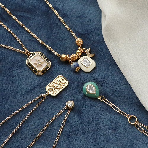 Page d'accueilInspirationSets d'inspirationInspiration pour des colliers stacking tendance avec des breloques et perles en laiton