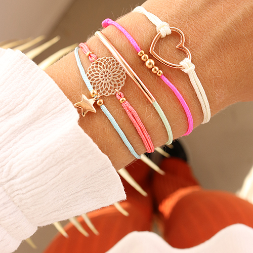 Confectionner des bracelets avec du fil macramé est super fun et ils se marient parfaitement avec le look d’été ! Le fil macramé aux couleurs éclatantes et les perles, breloques et connecteurs en métal DQ super tendance constituent à coup sûr une combinaison gagnante ! N’hésitez pas à essayer de nouvelles techniques de temps en temps et laissez-vous surprendre par le résultat. Regardez notre dernière vidéo d’inspiration sur le nœud coulissant et lancez-vous ! Amusez-vous bien !