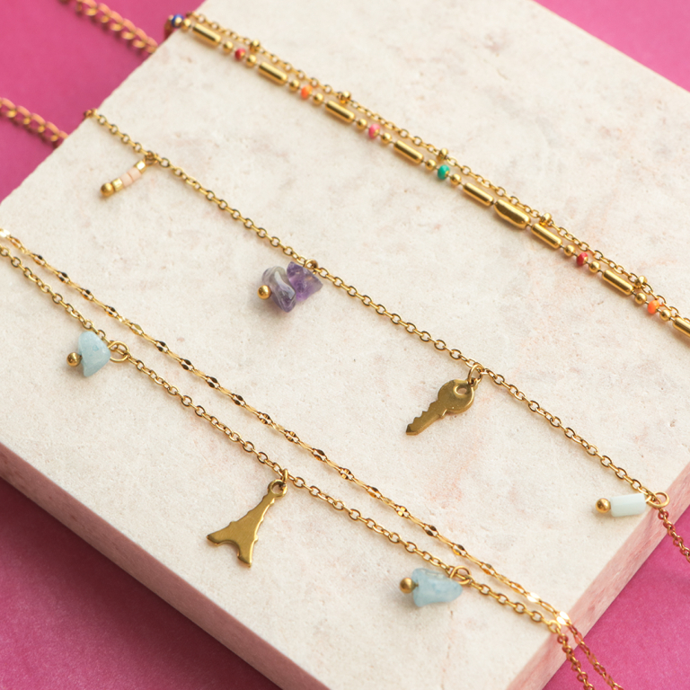 Ces bijoux prêts-à-porter sont indispensables pour votre assortiment ! Tous les articles sont inspirés des dernières tendances et, combinés à vos bijoux faits maison, ils s’accordent parfaitement. Laissez-vous inspirer et créez une nouvelle collection rapidement et facilement.