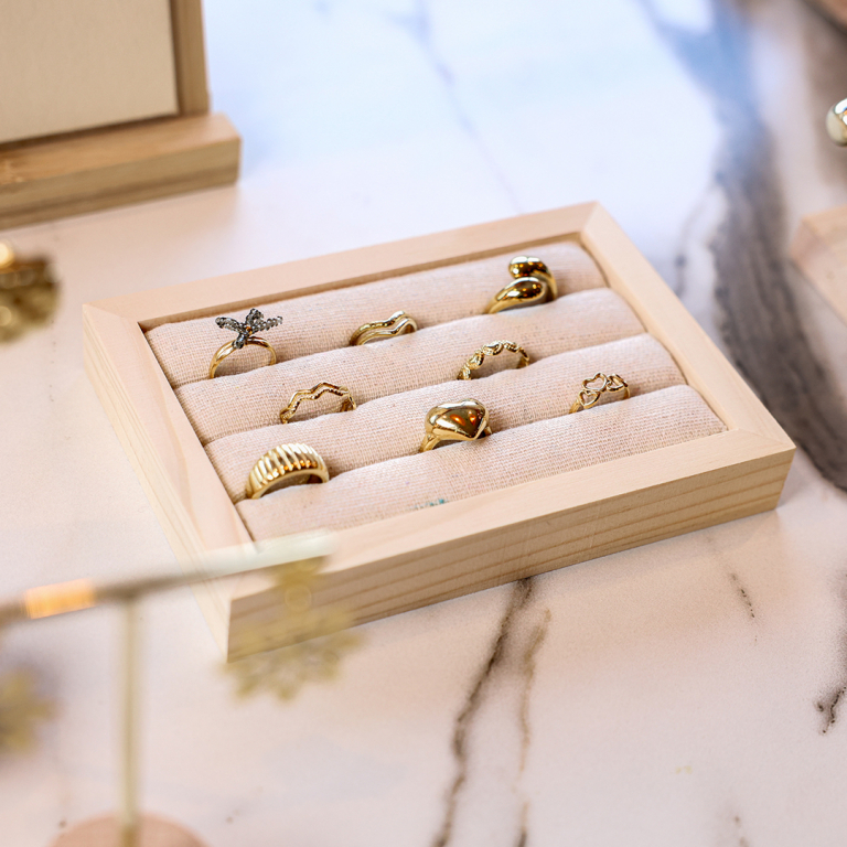 Présentoir bijoux pour bagues 3 niveaux Naturel-doré