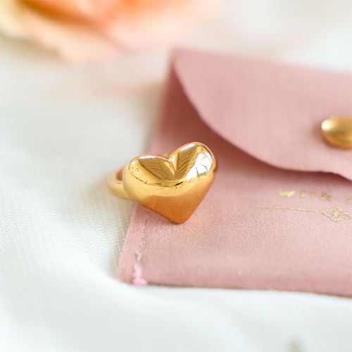 Bagues en acier Inox coeur Doré