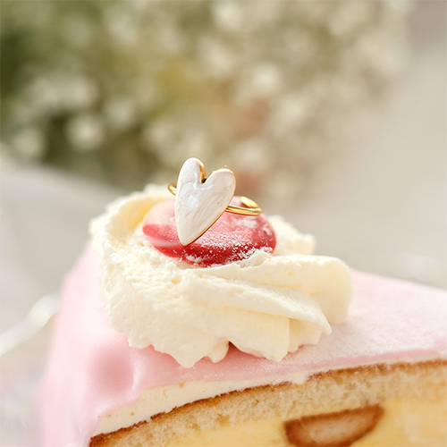 Bagues en acier inox émaillées coeur Rose clair nacré-Doré
