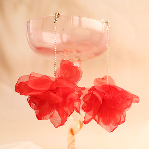 Boucles d'oreilles tendance fleur en mousseline Rouge-doré