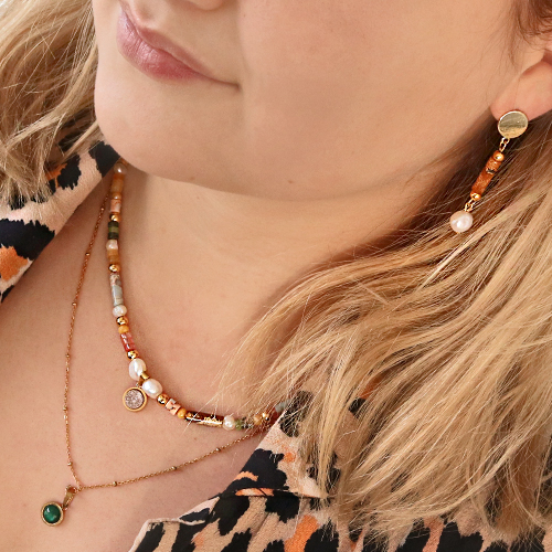 Réalisez de magnifiques bijoux grâce à notre collection de perles en pierre naturelle. La collection contient des perles en forme de disque (heishi) et de tubes qui conviennent à toutes sortes de bijoux. Ainsi, nous avons réalisé des bracelets, des colliers et des boucles d’oreilles avec ces perles. En combinant les perles en pierre naturelle avec des perles rondes en métal DQ, vous obtiendrez un effet ludique. Nous avons également combiné nos perles en pierre naturelle avec des perles d’eau douce, car ces perles sont un produit naturel avec, en plus, un magnifique brillance. Enfilez les perles sur du fil métallique pour un résultat sublime.