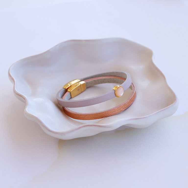Ces magnifiques pochettes, porte monnaies et bandes sont fabriquées en cuir italien. Les porte-monnaies sont disponibles en taille moyenne et petite. Attachez les bandes en cuir de 5 ou 10 mm aux pochettes ou utilisez-les sur les bracelets pour obtenir d’élégants bracelets.