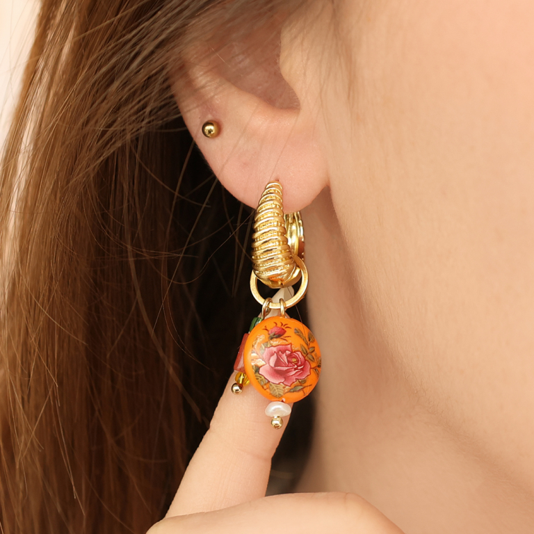 Boucles d'oreilles tendance émaillée 15mm Rose-doré