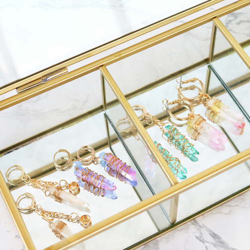 Ces bijoux élégants faits des pendentifs en Quartz aura s'intégreront parfaitement dans votre collection de bijoux. Pour vous donner de l’inspiration, nous avons fabriqué des boucles d'oreilles en combinant ces nouveaux pendentifs avec des apprêts en métal DQ. Astuce supplémentaire : utilisez également du fil Artistic Wire pour faire du wire-wrapping ! Découvrez ici nos dernières créations !