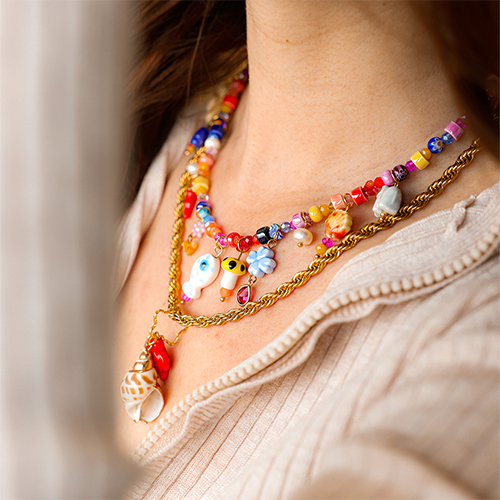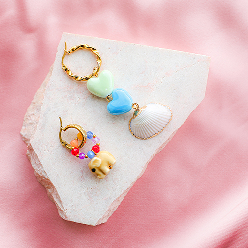 Découvrez notre nouvelle collection originale de perles en céramique. Disponible dans des formes colorées comme l'éléphant, la tortue, le champignon, le cœur et le coquillage. Combinez les perles avec des facettes, du cordon tendance, du millefiori et de vraies breloques en coquillage pour de magnifiques colliers et des boucles d'oreilles.