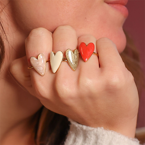 • Bagues en acier inox émaillées coeur Doré nacré